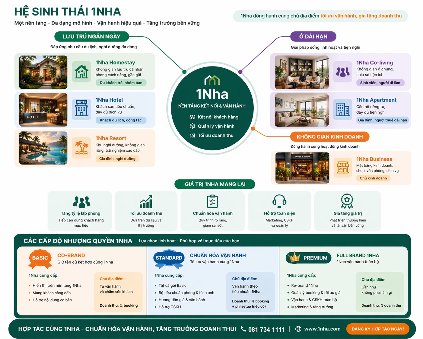 | 🥇 Premium | Full brand 1Nha | Quản lý toàn bộ | Gần như không vận hành | % doanh thu |
